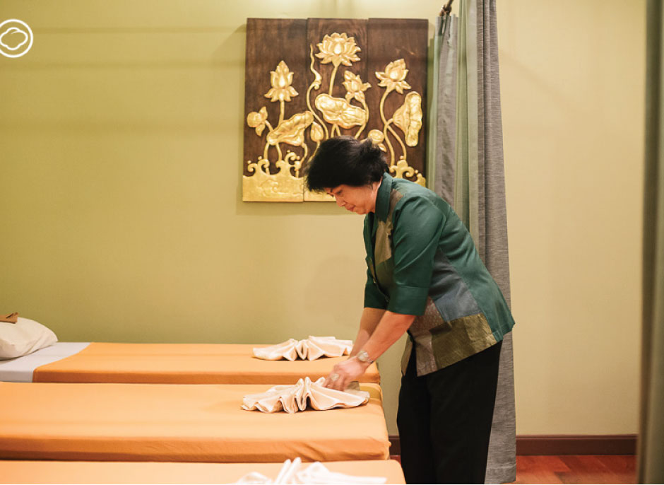 เดินผ่านเคาน์เตอร์ เพื่อเข้าสู่ด้านใน มีอ่างสำหรับล้างเท้า ในน้ำแช่ด้วยดอกไม้รออยู่ พนักงานแนะนำ ให้นั่งหย่อนขาลงในอ่าง มีน้ำดื่มน่าจะเป็นน้ำสมุนไพร และผ้าเย็นวางคู่กัน รอไว้ให้ การล้างเท้าเป็นไปด้วย ความอ่อนโยน แต่สำหรับผม ด้วยความที่ไม่ชิน ความรู้สึกบอกไม่ถูก กับการที่ถูกใครสักคน มาทำแบบนี้ให้ ถึงแม้ว่าจะสบายมากๆ ก็ตามที แต่ก็ยินยอมให้ทำแต่โดยดี พอเสร็จผมก็ยกมือไหว้ มาทราบทีหลังว่าชื่อ "พี่หอม"